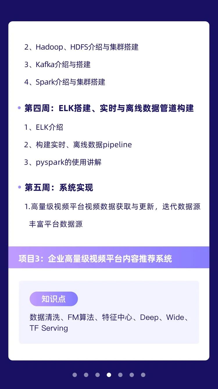掌握企业分布式大数据开发,能够使用Hadoop、Spark、Kafka、zookeeper等实现推荐系统建模、算法选择、算法应用的整个实战应用。