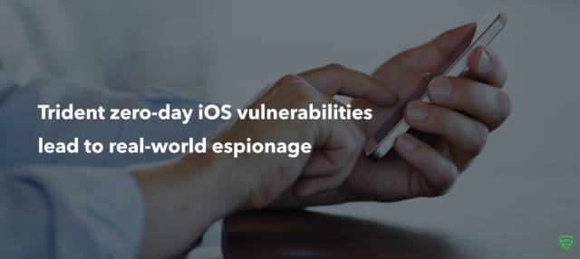 ➡2016年8月苹果手机曝出iOS三叉戟漏洞。攻击者通过短信发送给手机两个链接,在用户点击连接后即可远程控制手机,并且窃取手机上的短信、邮件、通话记录、电话录音、存储的密码等隐私数据,还能监听并窃取Whatsapp、微信等社交软件的聊天信息。该链接利用了苹果手机iOS操作系统中的3个0-day漏洞,这三个漏洞也是在安全圈名声大噪的“三叉戟漏洞”。