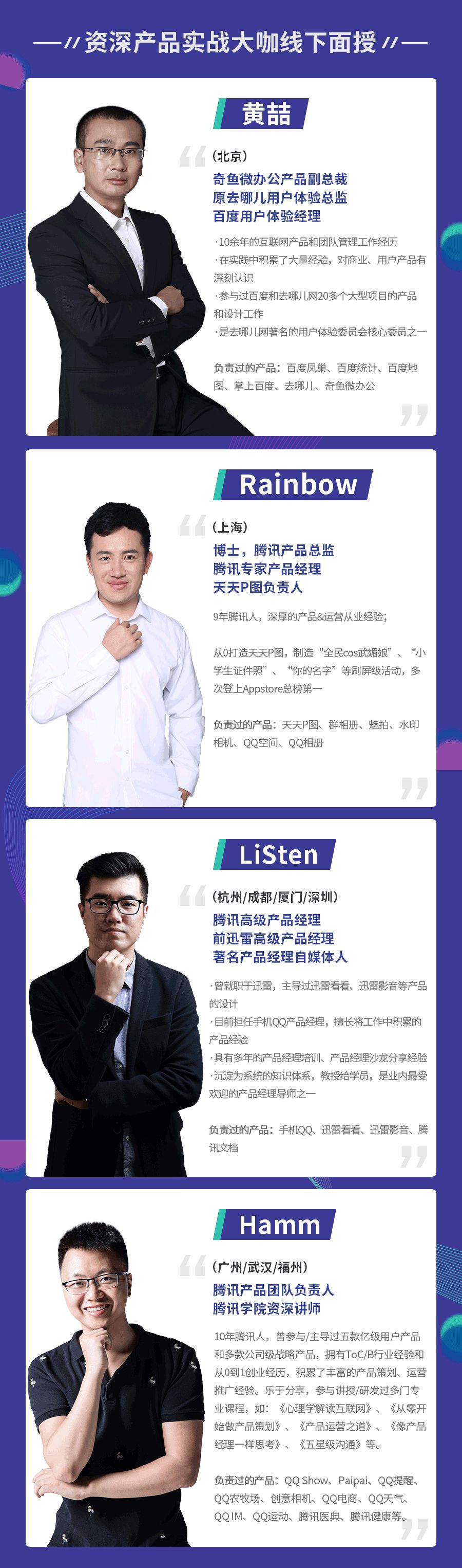 比如我当时参加课程的导师:天天P图负责人Rainbow老师,已经是腾讯产品总监段位。