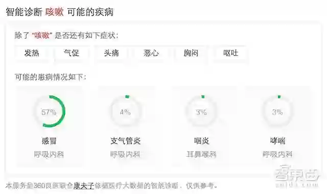 张超表示,目前康夫子的合作伙伴已经覆盖了全国前十大的HIS医疗信息化公司中将近一半的企业,其问诊交互服务也应在搜狗名医、360良医网站上线,当用户在这些网站搜索“咳嗽”或者“肚子疼”时,系统将会给出可能的疾病类型,比如“可能57%是感冒,4%是支气管炎,3%是咽炎……”
