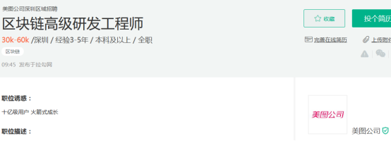因为网上曝出了美图正在招聘区块链工程师的广告,美图似乎在区块链上发力。