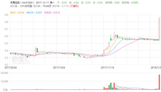 来自主板的丰展控股(01826.HK)因周五是要约收购截止日,股价暴涨4成,进入涨幅榜前列。