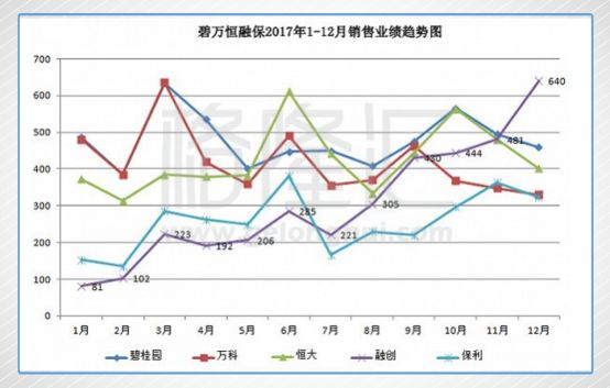 根据克而瑞日前公布的2017年中国房地产企业销售排行榜,截至2017年底,碧桂园、万科、恒大销售额突破5000亿元,其中碧桂园以5500亿元排在榜首;同时,千亿房企数量增至17家。