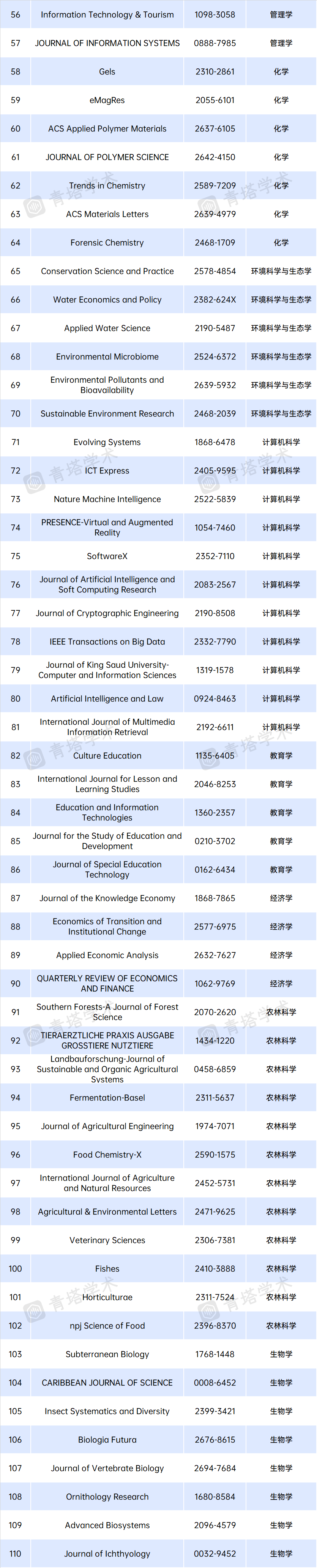 青塔学术、中科院文献情报中心期刊分区表,版权属于原作者,仅用于学术分享