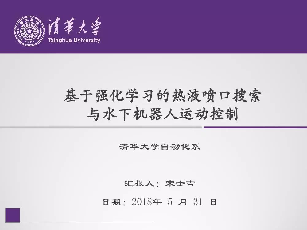 今天为大家分享的是清华大学自动化系宋士吉教授在讲习班中所做的报告PPT——《基于强化学习的热液喷口搜索与水下机器人运动控制》