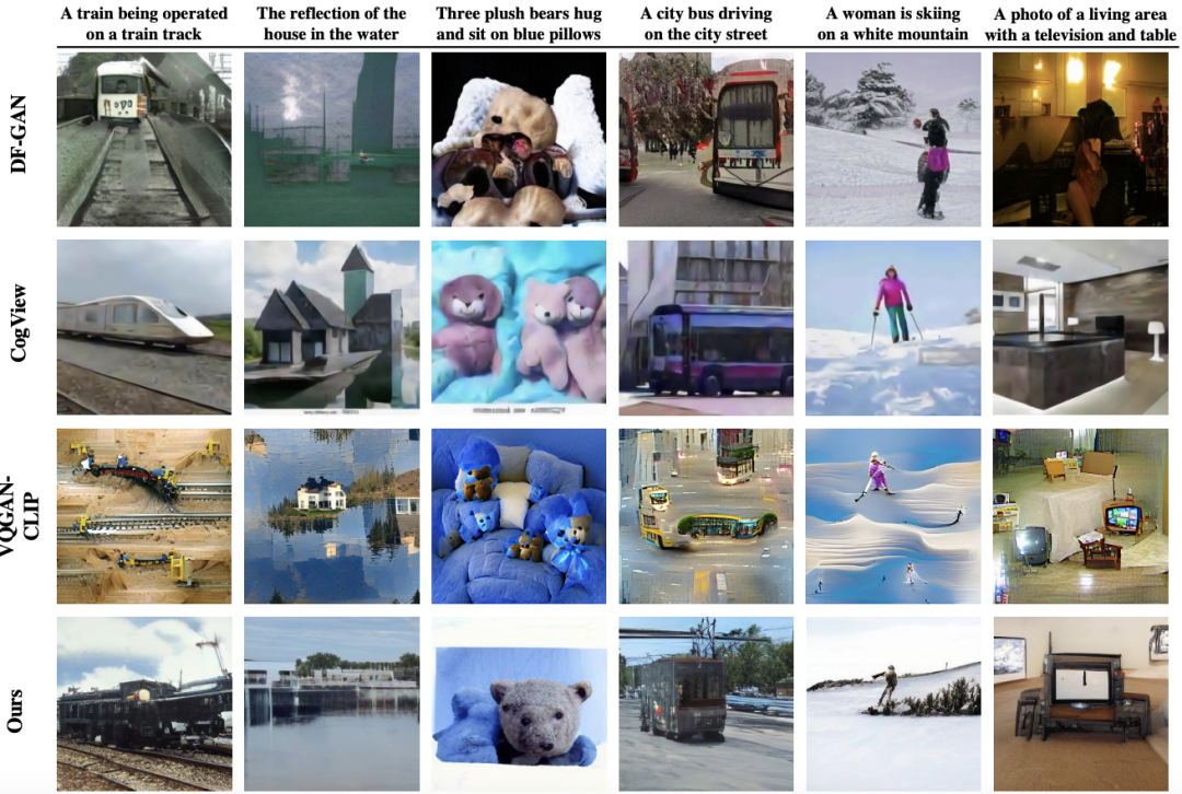 其中,VQGAN-CLIP的结果比较不真实,并且伴随严重的形状扭曲。