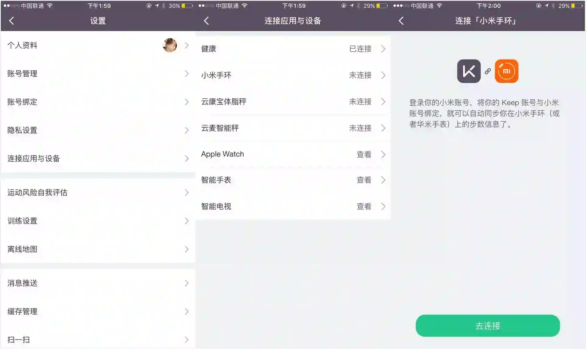 *Keep app中已打通与智能硬件的连接,方便用户全方位记录自己的运动数据。
