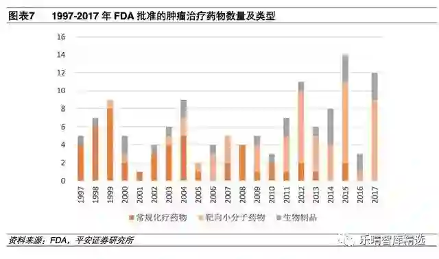 2015年批准的14个抗肿瘤药物中,靶向药物达到12个,2016、2017年批准的全部都是靶向药物。