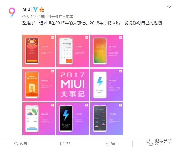 @MIUI 官微今日总结了2017年的大事记,盘点了过去一年MIUI加入的重磅新功能以及里程碑事件,看看你都用过哪些吧。具体如下: