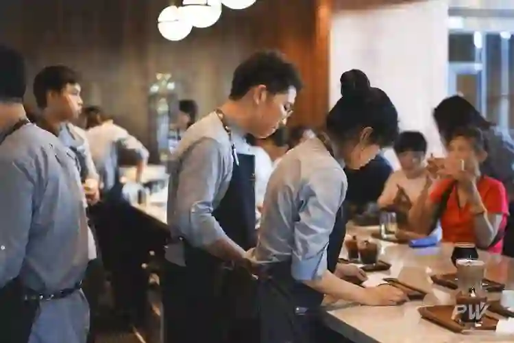 在二楼喝过茶之后,我来到了这家星巴克的最高层——三楼。三楼与下面两层最大的不同是采用了类似酒吧的吧台式设计。
