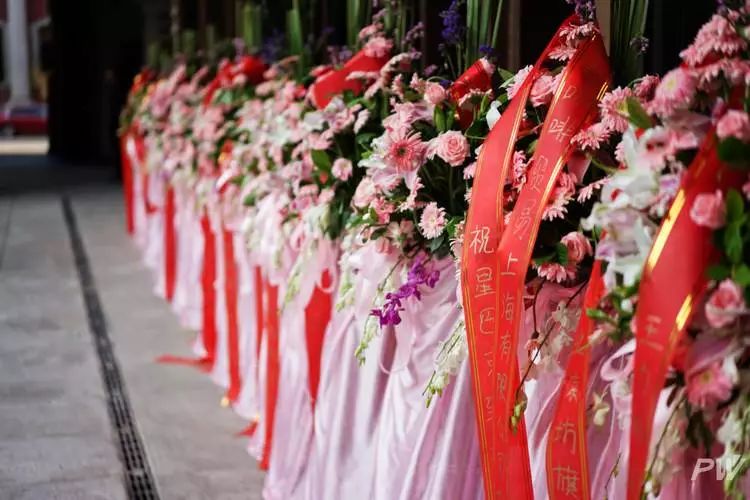 比如距离门最近一侧的第一个花篮是上海的一家咖啡店送来的。