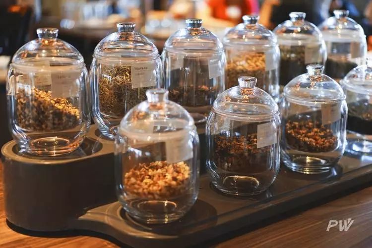 为了突出二楼“茶瓦纳”的主题,星巴克做了一面茶包墙,你能在二楼喝到的茶都在这面墙上有展示。上一次我看到这么有创意的展览墙还是在 Google 新加坡总部。