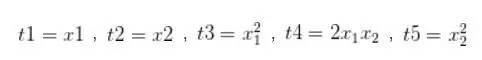 (1) 式是线性回归,只能表达线性关系,(2) 式是多项式回归,能够表达非线性关系。这时我们令: