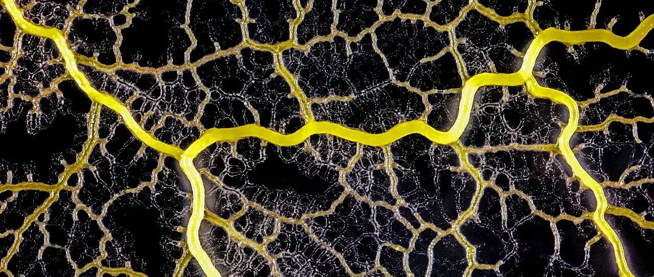 多头绒泡菌(Physarum polycephalum)形成一个细胞质管状网络,遍布了整个平面