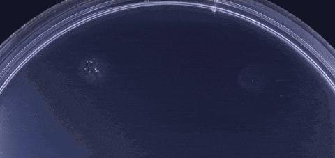 在这个培养皿中,几种不同的枯草芽孢杆菌菌株并列生长。生物膜可以区分不同的细菌菌株,它们可以与近亲相融合,但与其他菌株形成边界。