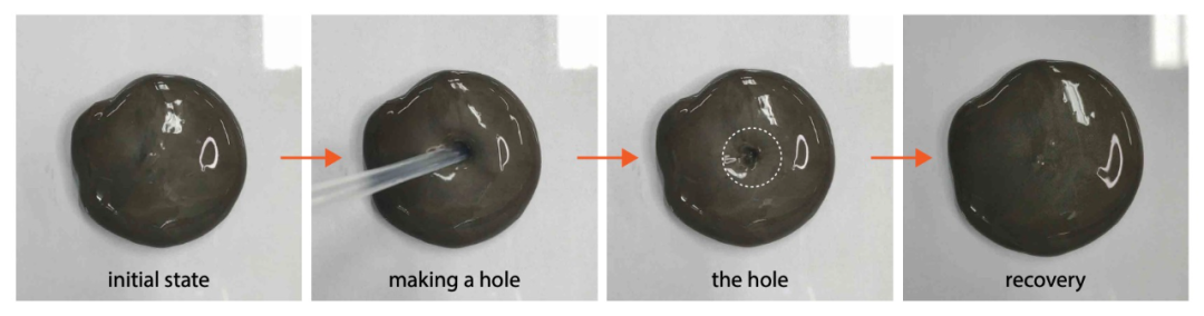slime 由聚乙烯醇、硼砂和钕磁铁颗粒的混合物制成。研究团队成员、香港中文大学教授张立说:「这种材料就像是水和淀粉的混合物,是一种非牛顿流体,其粘度会在外力作用下发生变化。当你快速触摸它时,它就像一个固体。当你轻轻地、慢慢地触摸它时,它就像液体一样。」