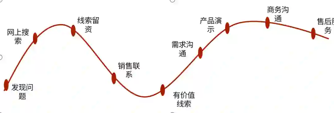 用户的触点可以参考下面这张图,大多数的企业都遵循这个逻辑来采购B端的产品。