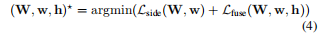 损失函数主要涉及关于side branch的目标函数和fuse层的损失函数。