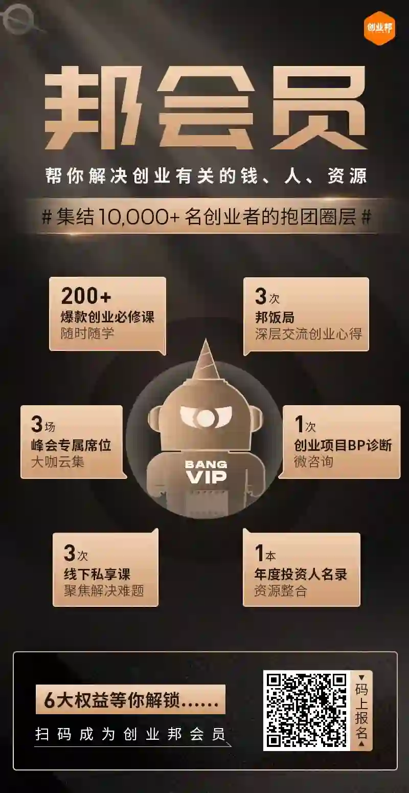 创业邦会员是有15年创投领域积累的创业邦,联合知名投资人、企业家、创业者共同打造的高端创业圈层。