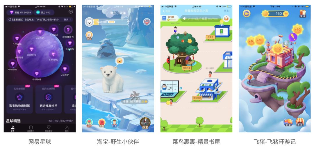 目前已有虾米音乐的“养虾米”、高德地图的“高德小桥”(卡通形象为小鹰)、新浪微博的“熊猫守护者”、随手记的“随手薅羊毛”、淘宝的“野生小伙伴”、优酷视频的“果园大作战”等玩法把大量人民群众喜闻乐见的动物、植物据为己有。
