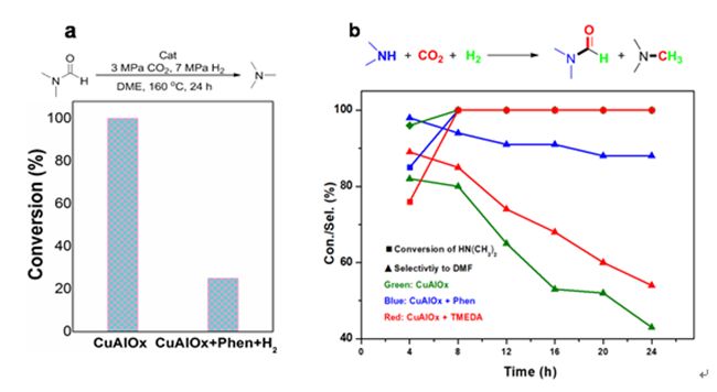 控制实验(a,DMF加氢反应;b,二甲胺与CO2/H2制备DMF/三甲胺)