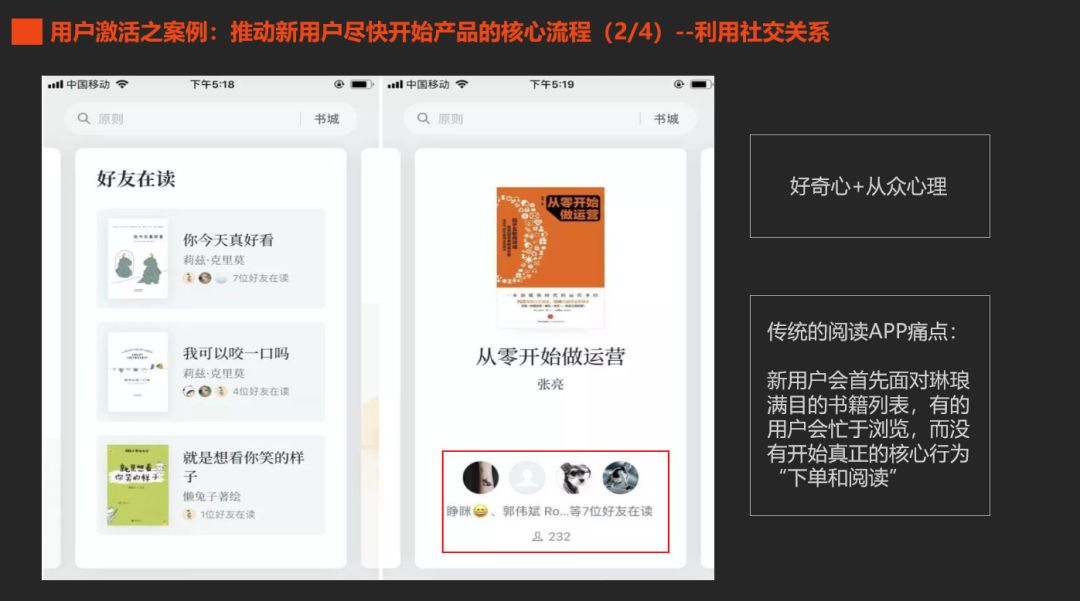 不得不说的还有一种社交关系法,利用社交属性引导用户“从众”,比如微信读书,传统的阅读App按照单纯的品类进行分类,读者根据热门、根据品类去选择。而增加了“好友在读”的功能,激发了大家的好奇心。譬如最新微信版本里的“好看”的功能,也是用了社交影响的方式进行吸引。