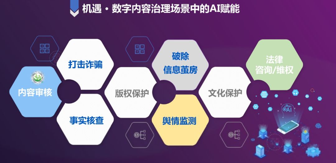 如在内容审核方面,人工智能技术极大地提高了不良信息识别发现、审核判别、处置处罚等治理效率,有效节省人力、物力成本。