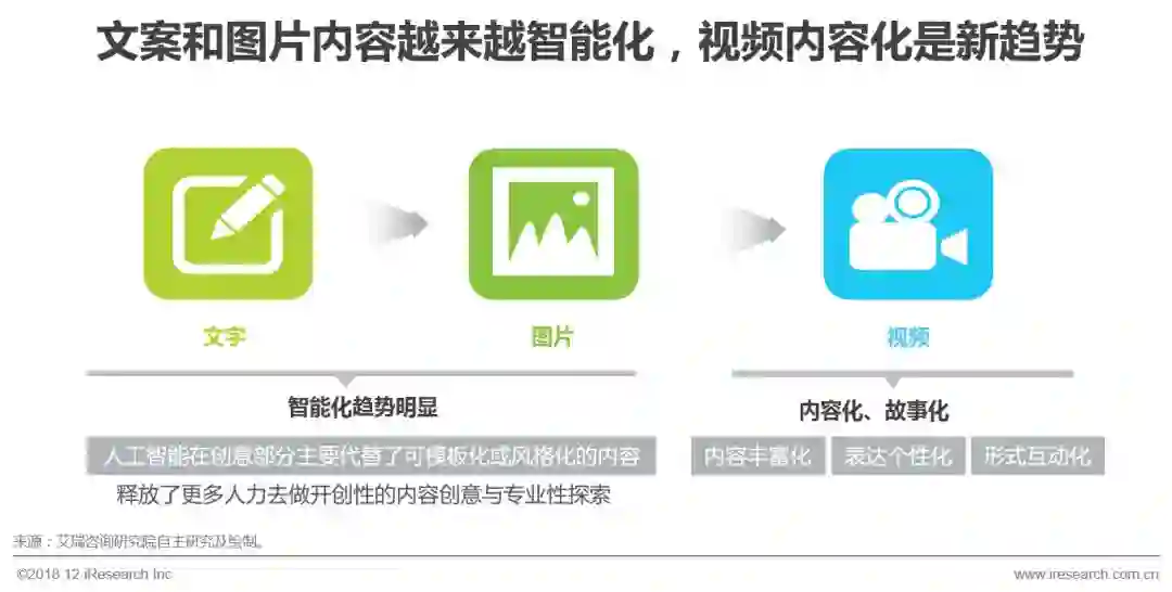智能化早已对广告业进行重构:以内容制作为例,在大数据及人工智能技术的辅助下,文案广告正从人工创意向机器创意过渡,智能化凸显。像京东的莎士比亚、阿里的鲁班等人工智能文案系统,已经具备类似人类记忆的“神经元”功能,用户使用过程中最终选定的文案,系统会自动“存储记忆”。与此相对的是视频广告的内容化,不同于文案的创作,视频创造需要音乐和画面等多重要素的结合,而音乐和画面本身就是有多个丰富的个体组成的,更需要感情去打造故事性,这也正是视频广告吸引人的原因之一。