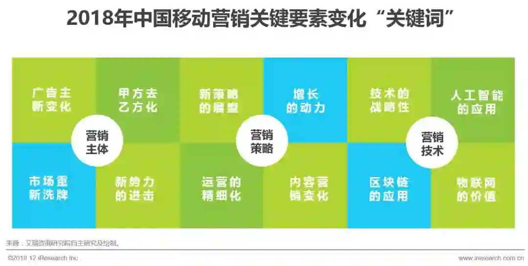 移动互联网改变了社会生活各类经济主体的思维和运营模式,移动营销及时响应移动互联网发展战略,因势而势。从营销关键要素来看,最明显的是技术带来的变化,技术消除了壁垒,透过大数据带来的是受众更全、投放更准、转化更高等优势,进而引发了营销主体(广告主、媒体、营销供应商)重新去思考如何争夺消费者注意力这场战役;最后,跟随而来的是营销策略的多重组合变化,广告主的目标将更聚焦于增长,内容的打法上社交和原生性更强,以及面对不断涌现的新兴玩法,参与方都再不断适应和探索。“变”一直是互联网最大的特征。