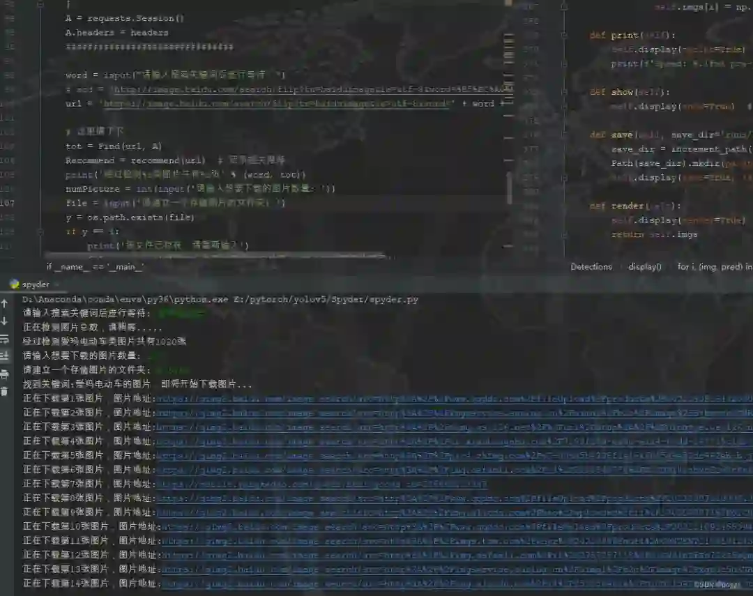 这是数据库构建最主要的工作之一,由于没有钱购买数据库,那么就得从零开始搭建数据集,而网络爬虫是最主要的方式。网络爬取数据通过借鉴网络爬虫脚本进行修改,对市面上常见的电动车进行调研,发现最常见的电动车品牌有雅迪、小刀、艾玛、绿源等,种类共包括电摩托、锂电池电动车、折叠电动车和脚踏电动车等,依次进行爬取,如下所示: