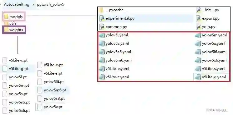在pytorch_yolov5/models文件夹中添加xx.yaml模型网络文件,在pytorch_yolov5/weights中添加xx.pt训练权重。