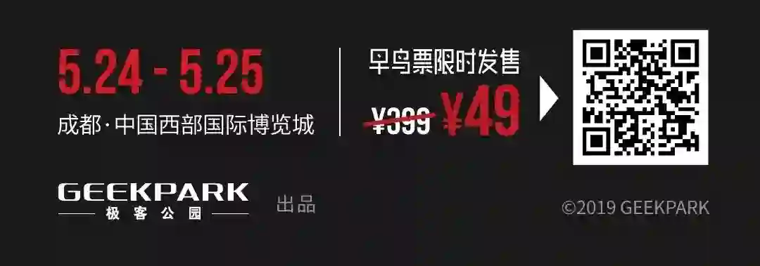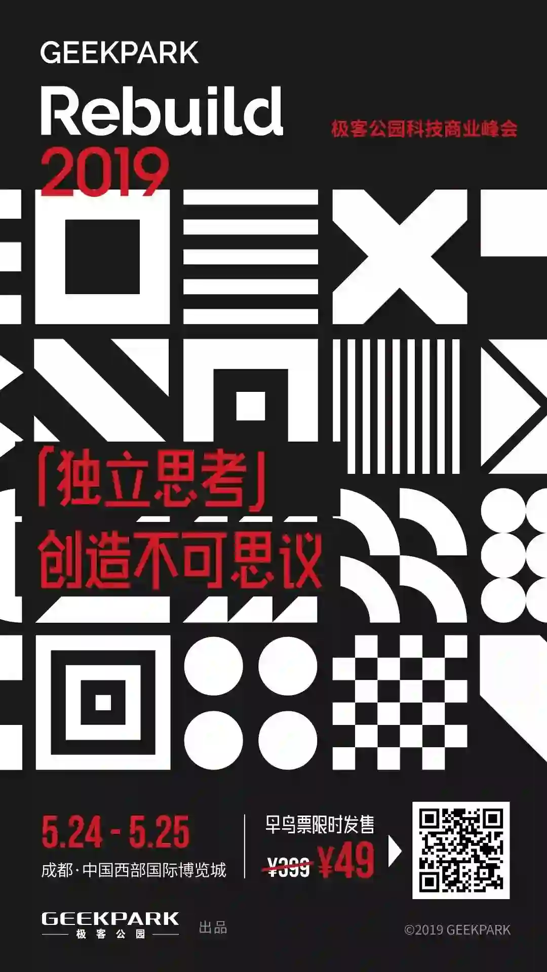 极客公园 Rebuild 2019 科技商业峰会,和那些创造了和正在创造不可思议的人们,一起面对必将发生的「近未来」,和极客公园一起「深思考」。5 月 24 日 - 5 月 25 日,我们成都见。