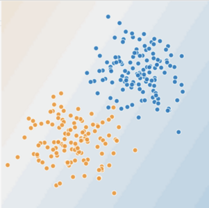 你可以画一条线将生病的树与健康的树清晰地分开吗?当然可以。这是个线性问题。这条线并不完美。有一两棵生病的树可能位于“健康”一侧,但你画的这条线可以很好地做出预测。