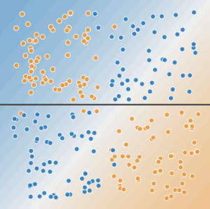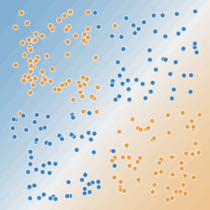 你可以画一条直线将生病的树与健康的树清晰地分开吗?不,你做不到。这是个非线性问题。你画的任何一条线都不能很好地预测树的健康状况。