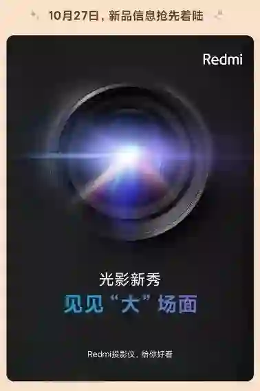 【小米 Redmi 首款投影仪外观亮相:预计10月27日发布】小米 Redmi 将于本月发布 Redmi Note 12 系列手机。根据电商平台的预约页面,小米将一同发布 Redmi 投影仪和 Redmi 投影仪 Pro,预计发布时间为 10 月 27 日,口号为“见见‘大’场面”。