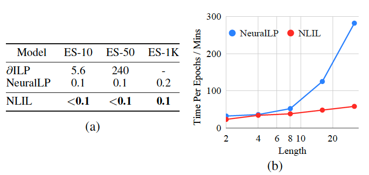 从表中可以看出,NLIL 模型在效果和效率上都明显的好于相关的 baseline。