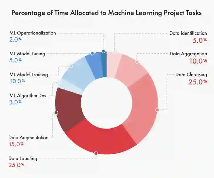 这就导致数据标注一直以来存在感极低。从下图我们可以看出,数据标注占据了一个机器学习任务25%的时间。
