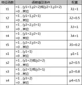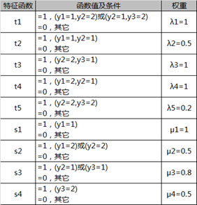 (2)每个特征的权重固定,特征函数只有0和1两个取值。