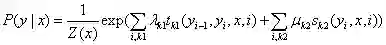 s为定义在节点上的特征函数,通常取值0或1,依赖于单个结点的状态,μ为其权重。s有时被称为状态特征。