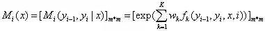构建矩阵Mi(x)。位置i和观测值序列x是矩阵的自变量。