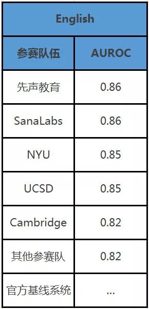 此次 SLAM 竞赛是由语言能力测试的权威机构 ETS 与世界上最大的语言学习应用 Duolingo 联合组织的。Singsound AI 团队参加了该任务的全部三个子任务:英语学习、西班牙语学习以及法语学习。先声教育的 CLUF 模型在英语学习上取得了第一名的好成绩,在西班牙语学习及法语学习上取得了第二名的成绩。