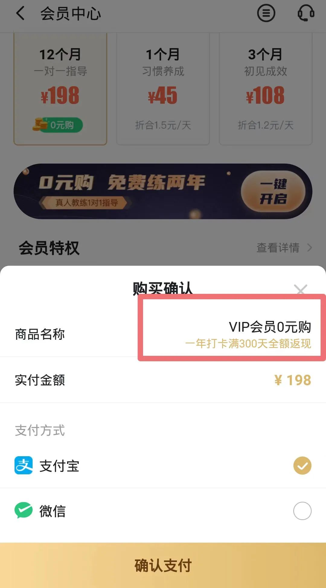 这是有条件的0元——购买会员,打卡满三百天后才能全额返现。