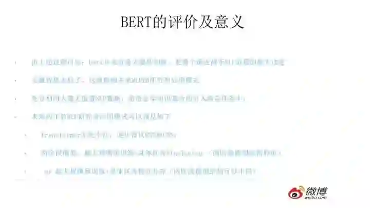 那么站在现在这个时间节点看,ELMO有什么值得改进的缺点呢?首先,一个非常明显的缺点在特征抽取器选择方面,ELMO使用了LSTM而不是新贵Transformer,Transformer是谷歌在17年做机器翻译任务的“Attention is all you need”的论文中提出的,引起了相当大的反响,很多研究已经证明了Transformer提取特征的能力是要远强于LSTM的。如果ELMO采取Transformer作为特征提取器,那么估计Bert的反响远不如现在的这种火爆场面。另外一点,ELMO采取双向拼接这种融合特征的能力可能比Bert一体化的融合特征方式弱,但是,这只是一种从道理推断产生的怀疑,目前并没有具体实验说明这一点。