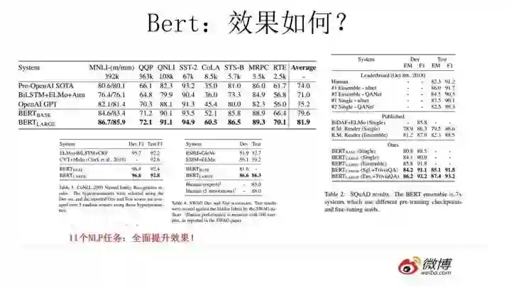 Bert采用这种两阶段方式解决各种NLP任务效果如何?在11个各种类型的NLP任务中达到目前最好的效果,某些任务性能有极大的提升。一个新模型好不好,效果才是王道。