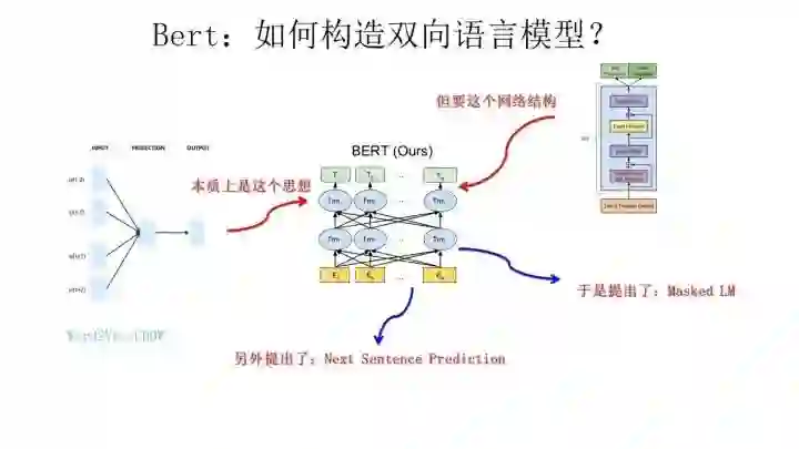 那么Bert本身在模型和方法角度有什么创新呢?就是论文中指出的Masked 语言模型和Next Sentence Prediction。而Masked语言模型上面讲了,本质思想其实是CBOW,但是细节方面有改进。