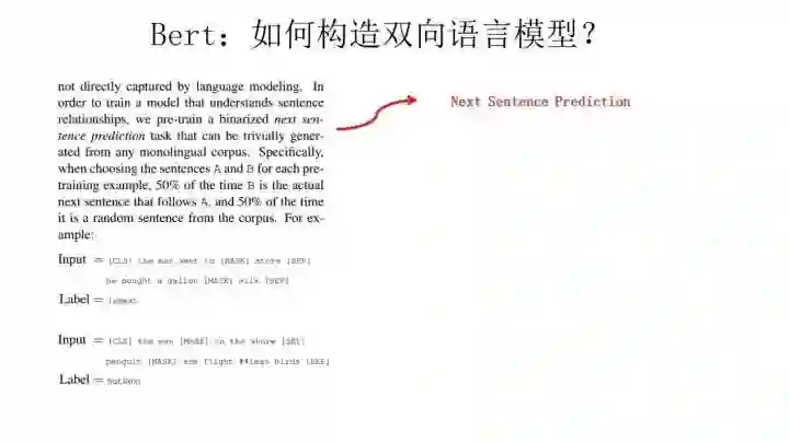 至于说“Next Sentence Prediction”,指的是做语言模型预训练的时候,分两种情况选择两个句子,一种是选择语料中真正顺序相连的两个句子;另外一种是第二个句子从语料库中抛色子,随机选择一个拼到第一个句子后面。我们要求模型除了做上述的Masked语言模型任务外,附带再做个句子关系预测,判断第二个句子是不是真的是第一个句子的后续句子。之所以这么做,是考虑到很多NLP任务是句子关系判断任务,单词预测粒度的训练到不了句子关系这个层级,增加这个任务有助于下游句子关系判断任务。所以可以看到,它的预训练是个多任务过程。这也是Bert的一个创新。