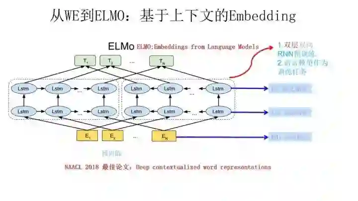 ELMO是“Embedding from Language Models”的简称,其实这个名字并没有反应它的本质思想,提出ELMO的论文题目:“Deep contextualized word representation”更能体现其精髓,而精髓在哪里?在deep contextualized这个短语,一个是deep,一个是context,其中context更关键。在此之前的Word Embedding本质上是个静态的方式,所谓静态指的是训练好之后每个单词的表达就固定住了,以后使用的时候,不论新句子上下文单词是什么,这个单词的Word Embedding不会跟着上下文场景的变化而改变,所以对于比如Bank这个词,它事先学好的Word Embedding中混合了几种语义 ,在应用中来了个新句子,即使从上下文中(比如句子包含money等词)明显可以看出它代表的是“银行”的含义,但是对应的Word Embedding内容也不会变,它还是混合了多种语义。这是为何说它是静态的,这也是问题所在。ELMO的本质思想是:我事先用语言模型学好一个单词的Word Embedding,此时多义词无法区分,不过这没关系。在我实际使用Word Embedding的时候,单词已经具备了特定的上下文了,这个时候我可以根据上下文单词的语义去调整单词的Word Embedding表示,这样经过调整后的Word Embedding更能表达在这个上下文中的具体含义,自然也就解决了多义词的问题了。所以ELMO本身是个根据当前上下文对Word Embedding动态调整的思路。