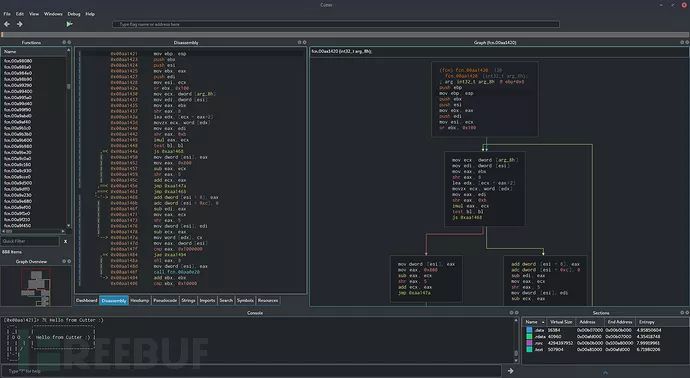 大家可以选择从这里下载最新版本的Cutter,如果你用的是Linux系统,可以使用应用镜像方式下载安装。Cutter最终的运行界面如下: