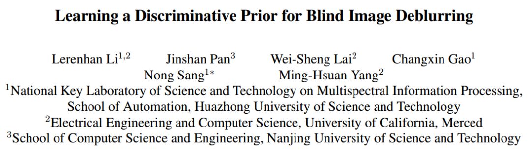 论文:Learning a Discriminative Prior for Blind Image Deblurring(学习用于盲图像去模糊的判别先验)