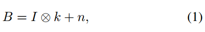 其中⊗代表的是卷积算子,B、I、k 和 n 分别代表模糊图像、隐藏的清晰图像、模糊核以及噪声。式(1)中的问题是不适定性,因为 I 和 k 都是未知的,存在无穷多个解。为了解决这个问题,关于模糊核和图像的额外约束和先验知识都是必需的。